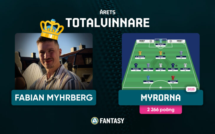 Fabian Myhrberg tog hem totalsegern i Allsvenskan Fantasy säsongen 2025. Laget ”Myrorna” plockade 2 266 poäng och hamnade högst upp av 70 882 spelare.